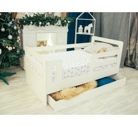 - Двойная выдвижная кровать небольшой высоты подойдёт для малюток, так как нивелирует риск падения и травматизма спящего малыша.