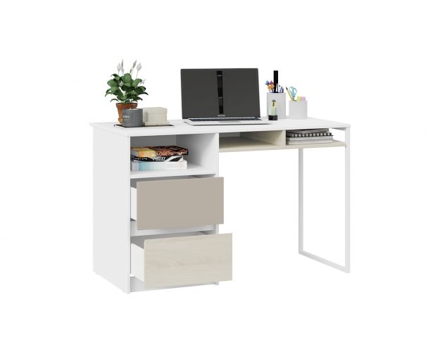 Стол письменный с ящиками Сканди дуб гарден / белый / глиняный серый хорошо подойдет для обустройства детской комнаты, а также домашнего, рабочего кабинета.