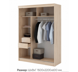 Размер: ширина 1500 мм, высота 2200 мм, глубина 600 мм