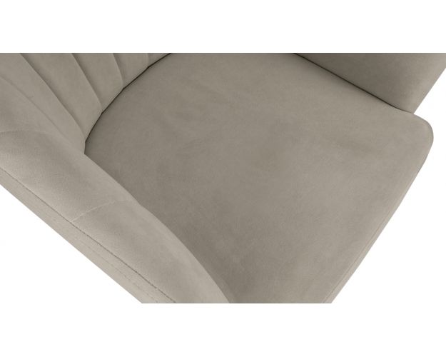 Мягкая обивка выполнена из бархатистого, износостойкого и долговечного материала, который декорирован вертикальной строчкой с внутренней стороны спинки и подлокотников.