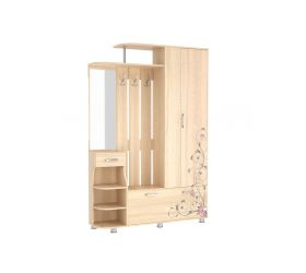 Прихожая Барселона-2 воплощает в себе открытую вешалку с крючками для теплой верхней одежды, закрытый шкаф, удобную обувницу и специализированное место для головных уборов. К тому же, модель укомплектована панелью с зеркалом, ящиком и полками для различных мелочей, которые должны быть всегда под рукой. Дизайн фасадов украшает элегантный узор. Удобство использования дополняется регулируемыми по высоте ножками.